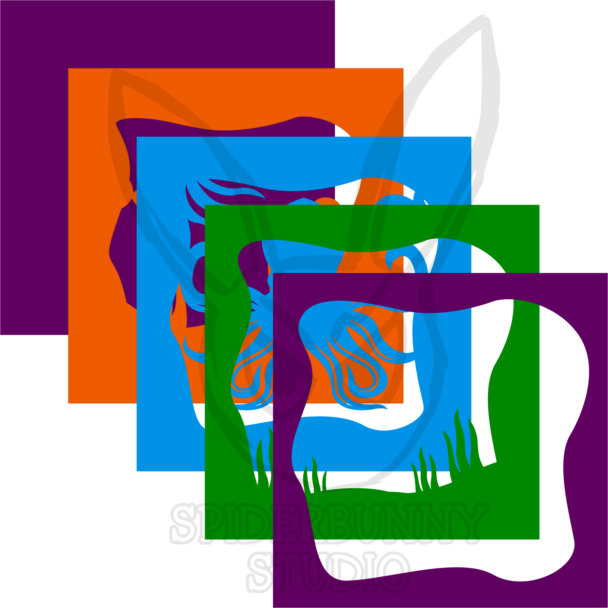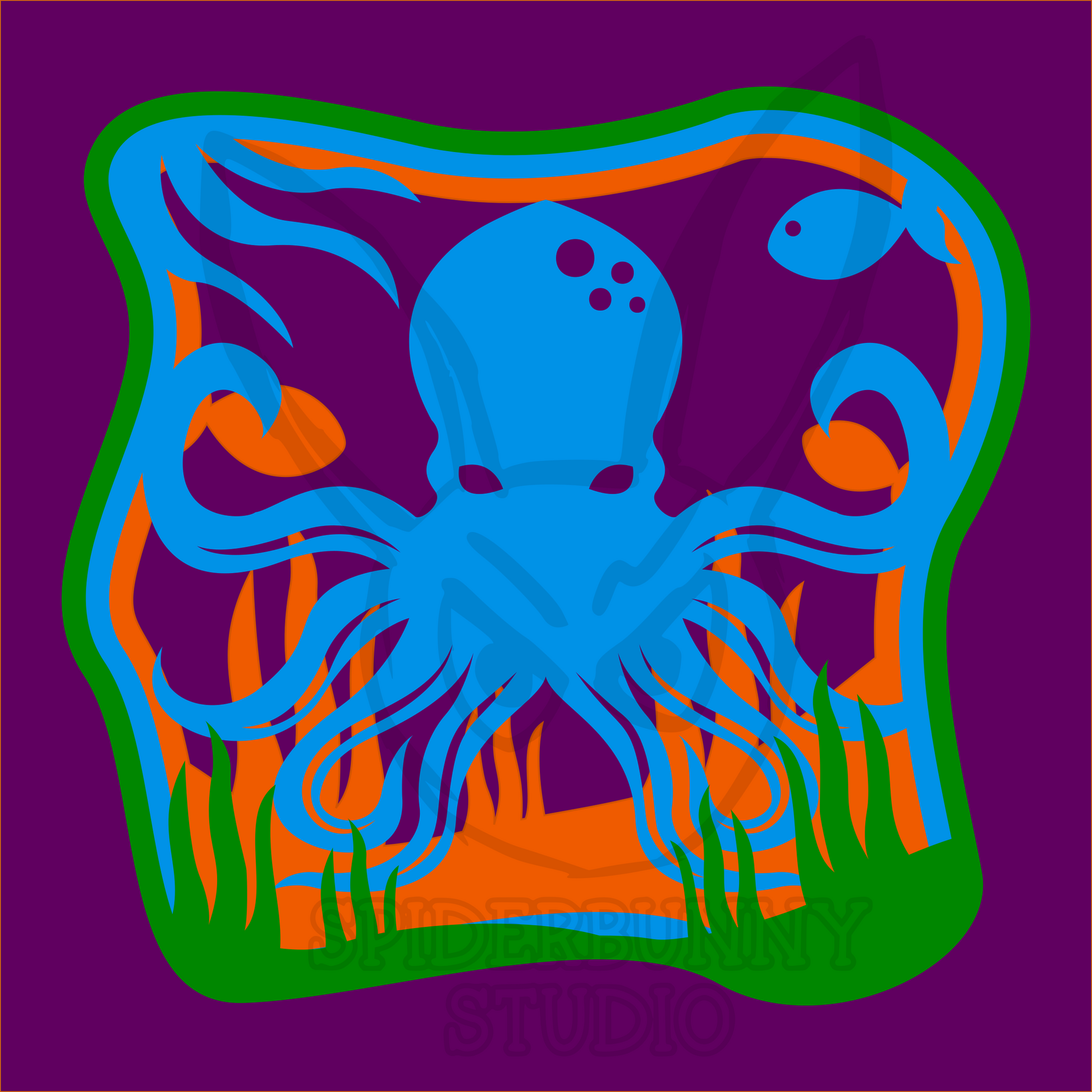 The Evil Octopus mini kit contains 5 layers and 4 paints, in purple, medium green, medium blue and orange.