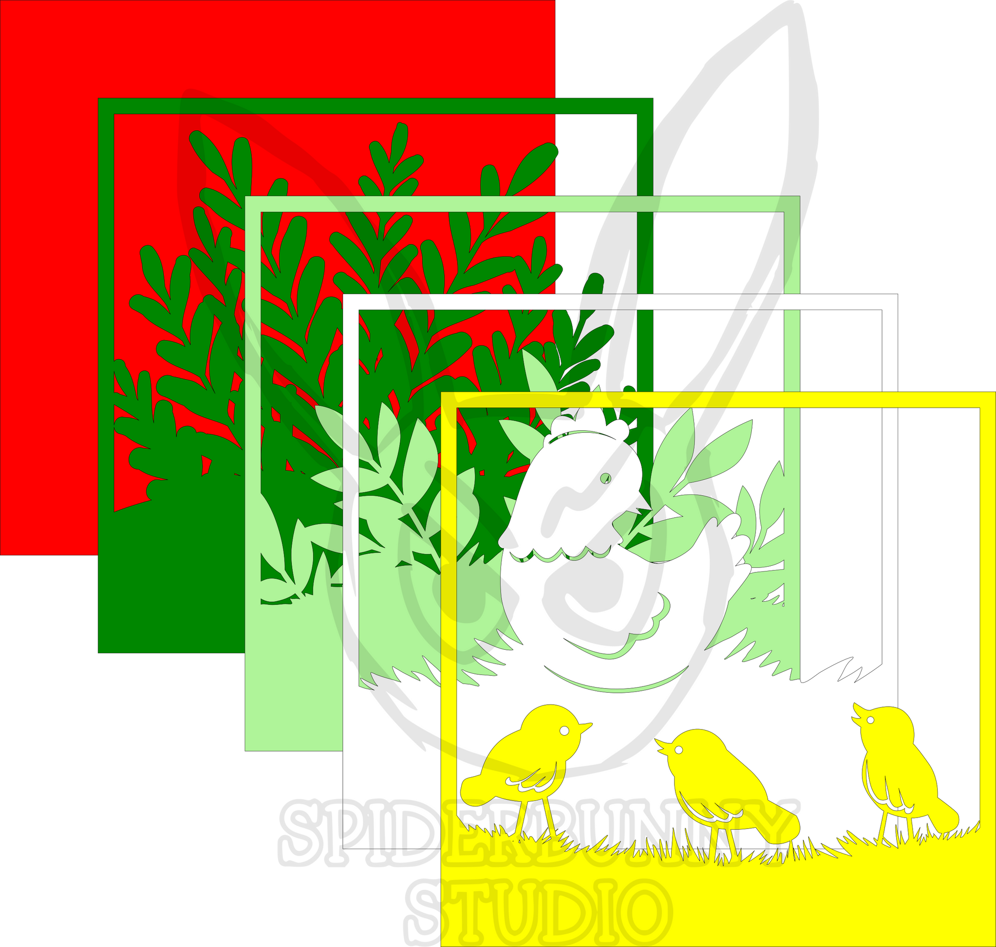 The Chicken and Chicks mini kit contains 5 layers and 4 paints, in yellow, white, medium green and red.