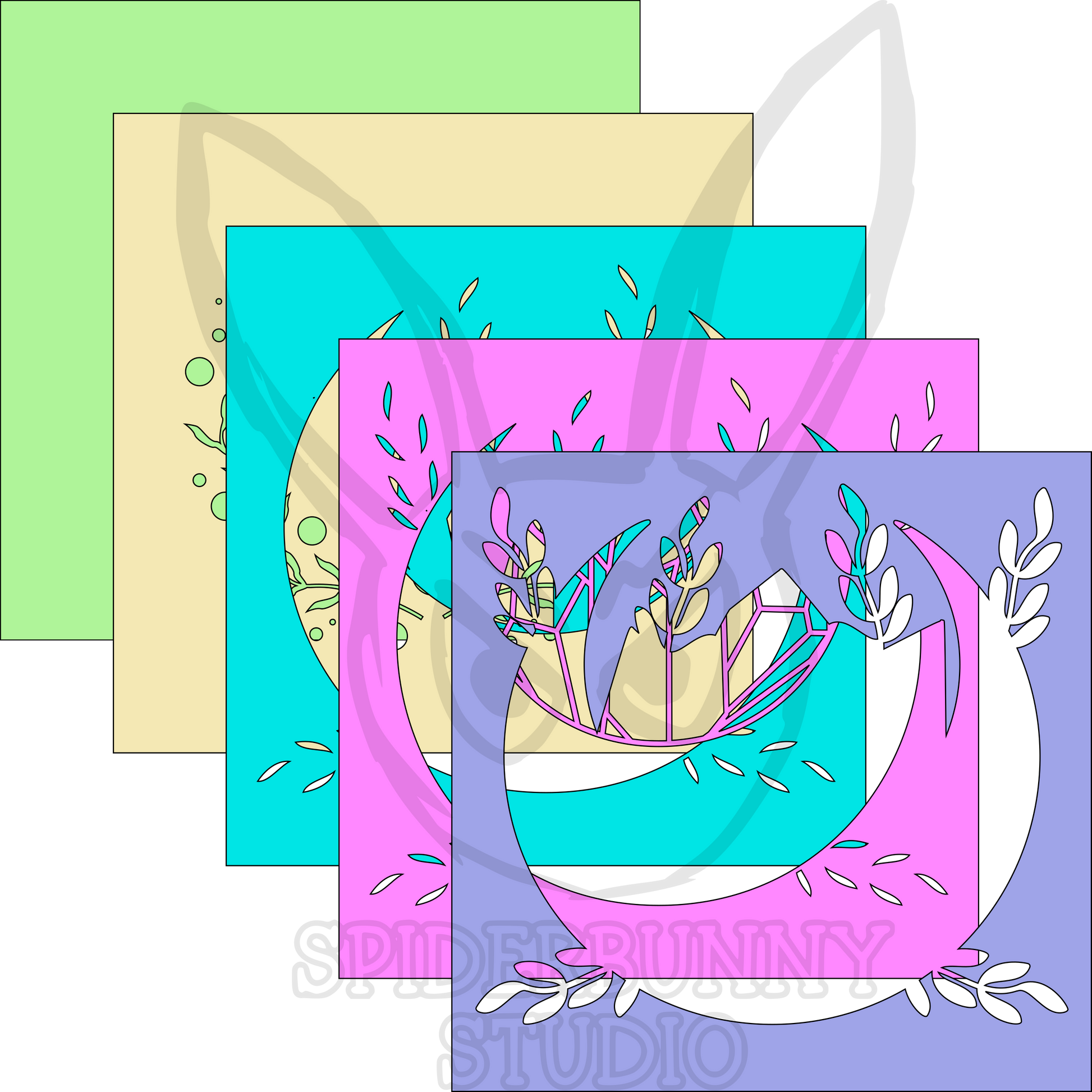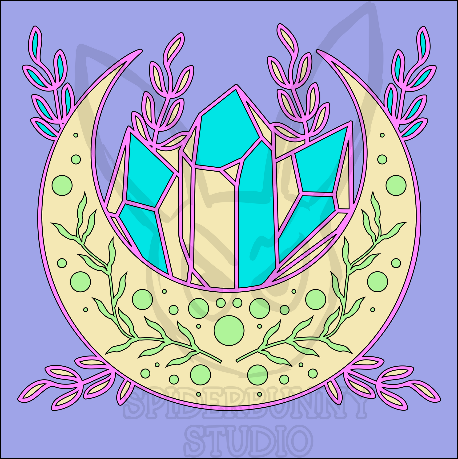 The Moon with Crystals and botanics kit contains 5 layers and 5 paints, in lilac, light pink, aqua, sand and light green.