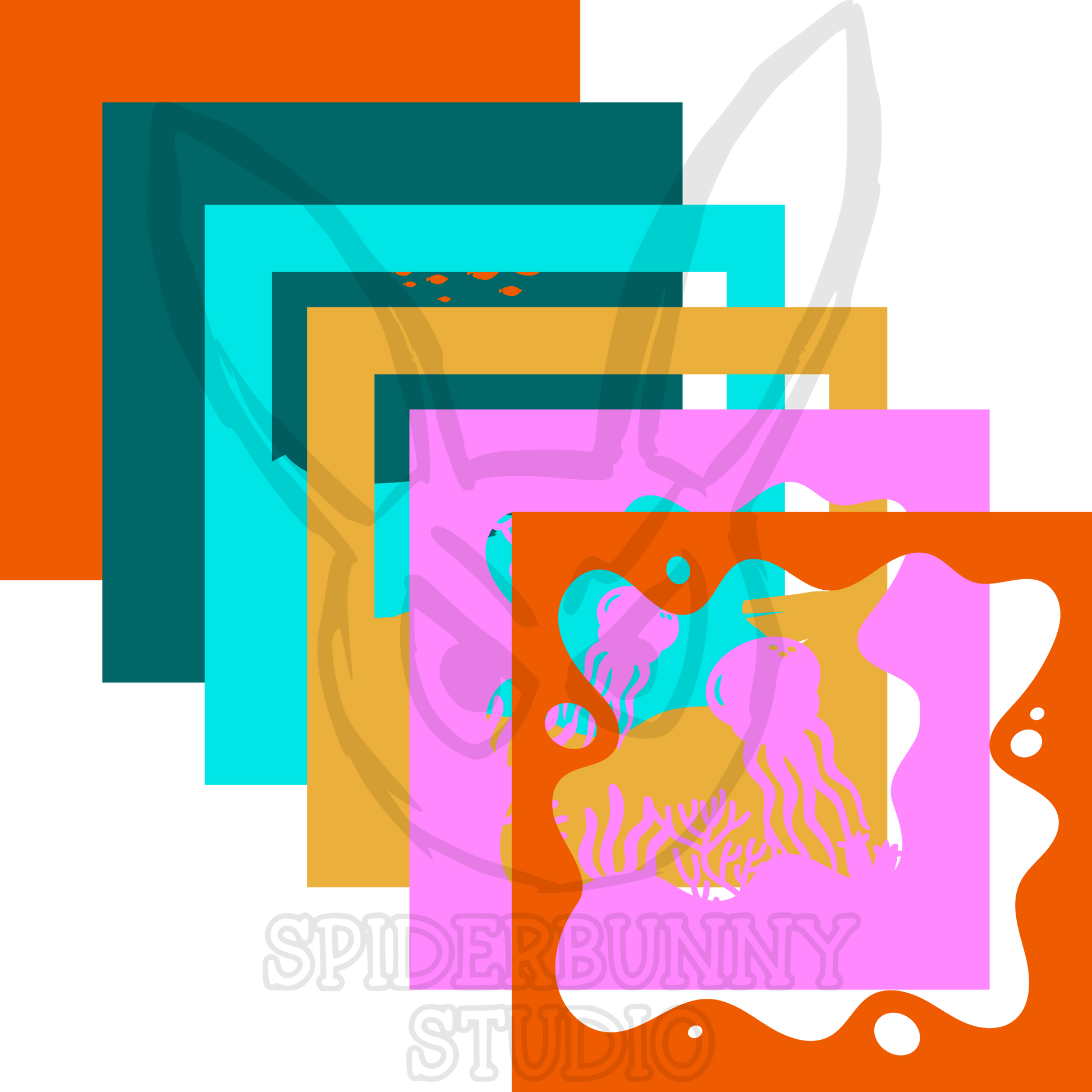 The Pair of Jellyfish kit contains 6 layers and 5 paints, in orange, light pink, ochre, aqua and teal.