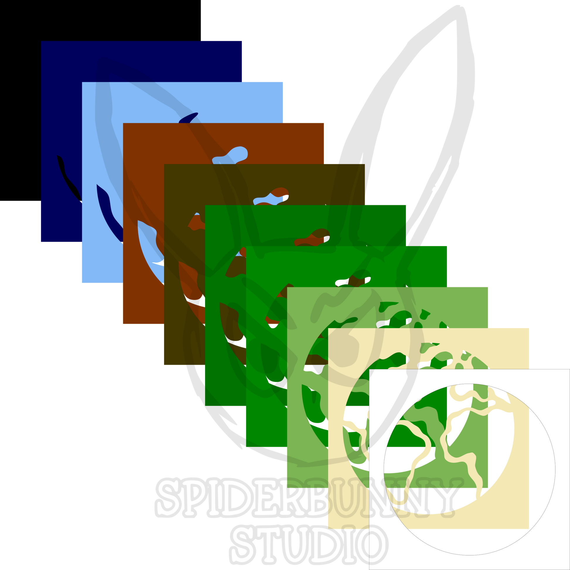 The Planet Earth kit contains 10 layers and 9 paints, in white, sand, light green, medium green, dark green, brown, light blue, dark blue and black