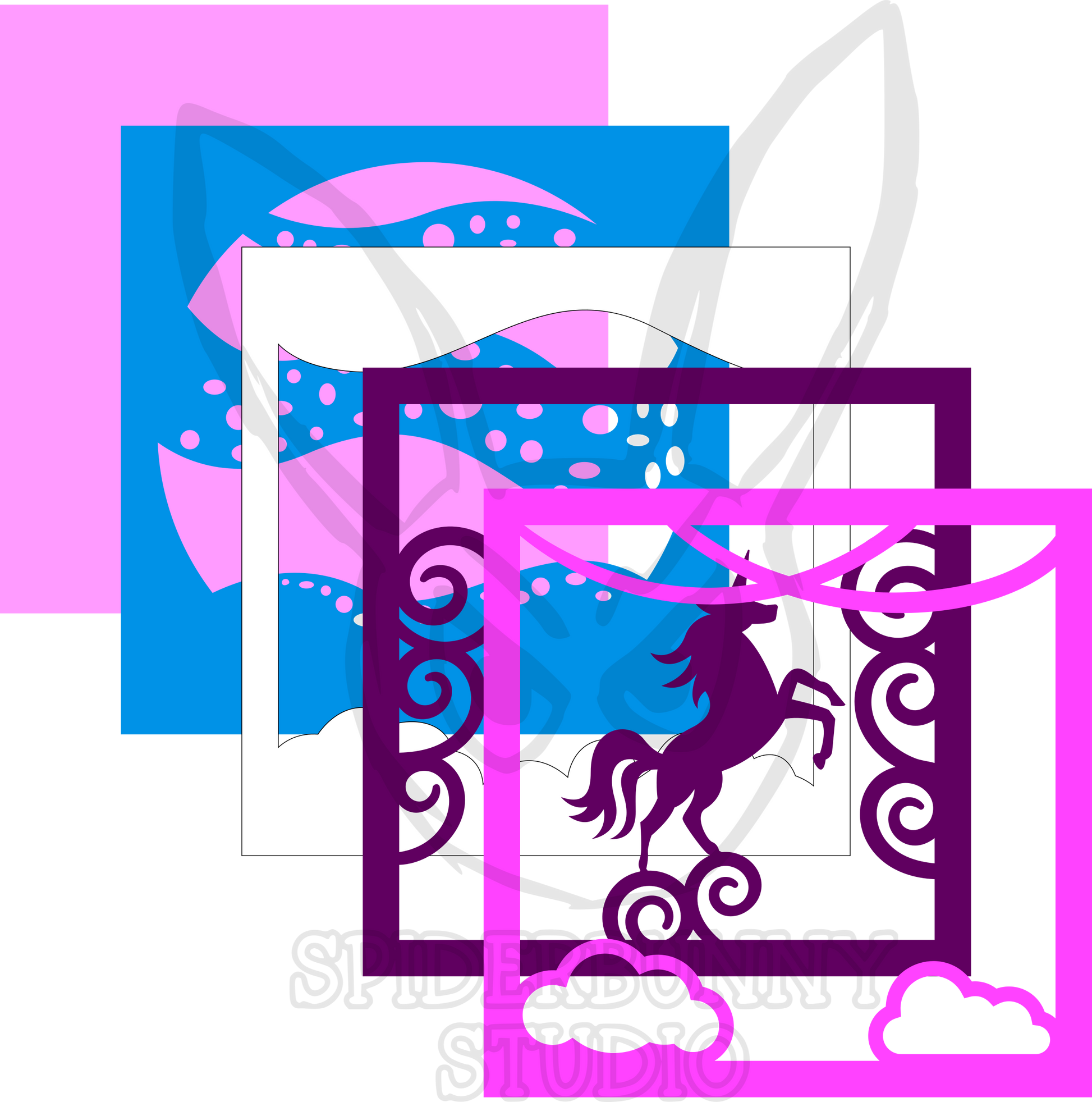 The Unicorn mini kit contains 5 layers and 4 paints, in dark pink, purple, white and medium blue.